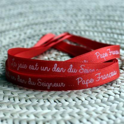 » La joie est un don du Seigneur… » Pape François. Cette parole est imprimée sur un joli ruban coloré, à nouer autour du poignet ,à porter lors de fêtes ou au quotidien.